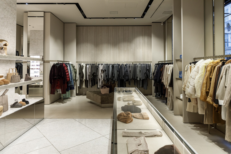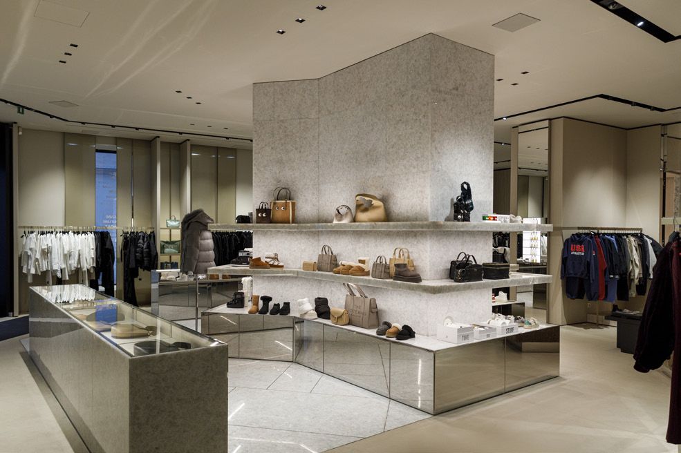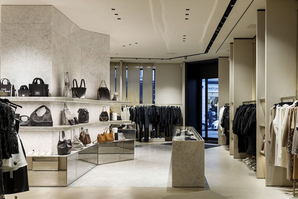 Legno scuro vengo, intonaco effetto cemento, Metallo nero opaco, tessuto velvet in tonalità petrolio per le corner lounge centrali