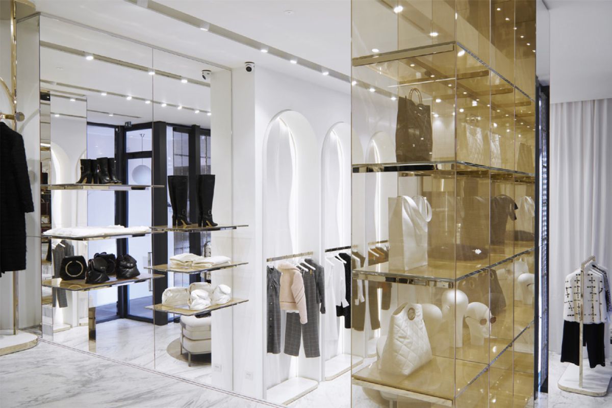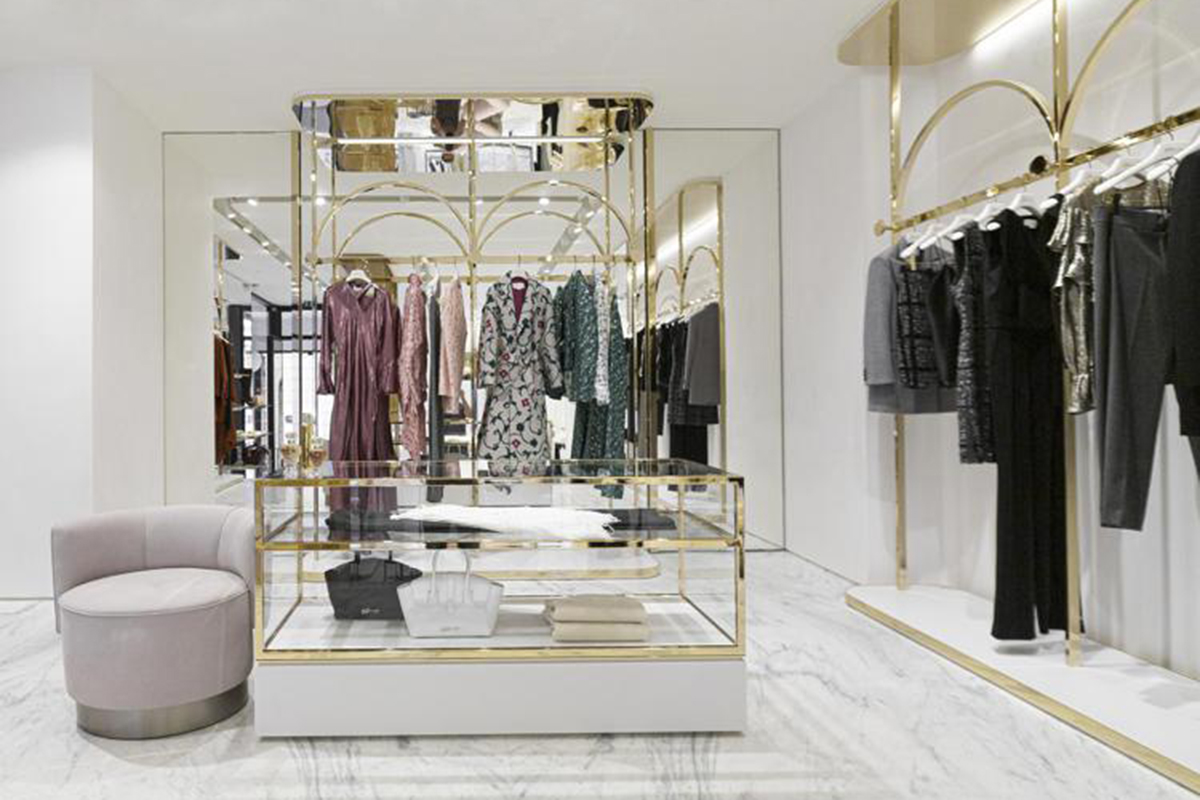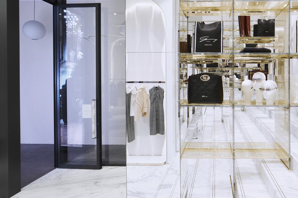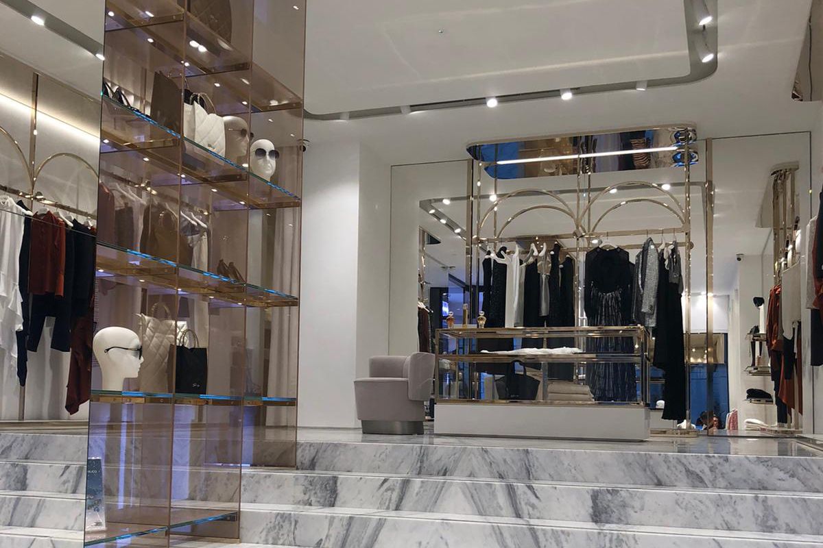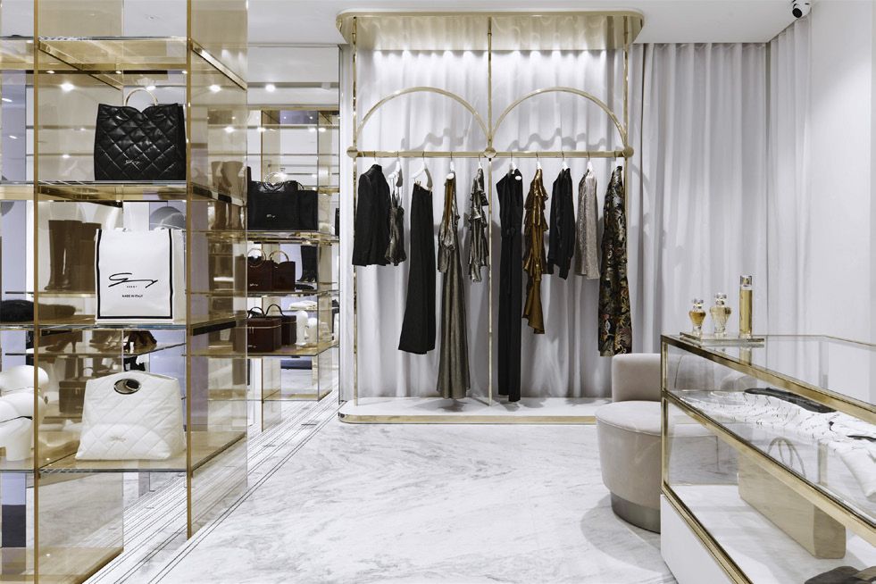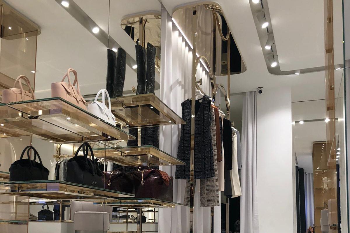 Legno scuro vengo, intonaco effetto cemento, Metallo nero opaco, tessuto velvet in tonalità petrolio per le corner lounge centrali