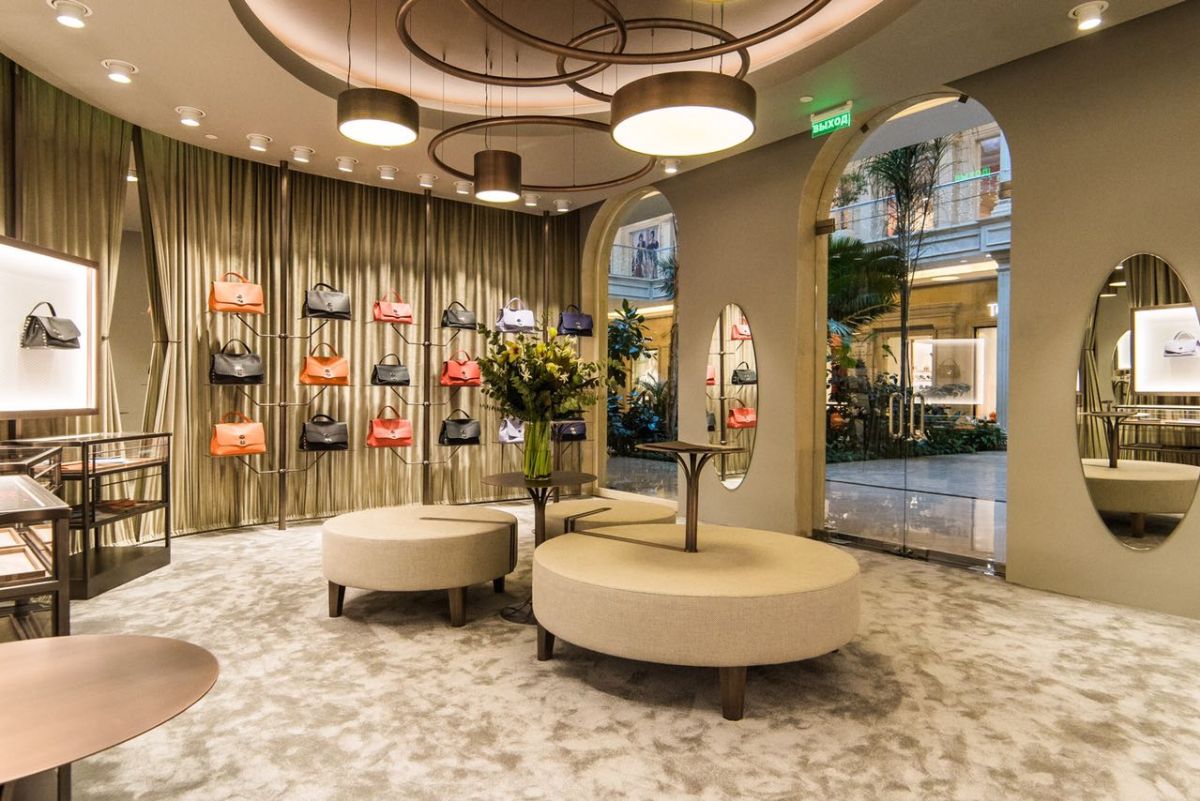 Legno scuro vengo, intonaco effetto cemento, Metallo nero opaco, tessuto velvet in tonalità petrolio per le corner lounge centrali